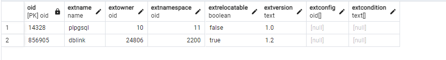 CREATE EXTENSION IF NOT EXISTS dblink;Comprobamos las extensiones instaladas