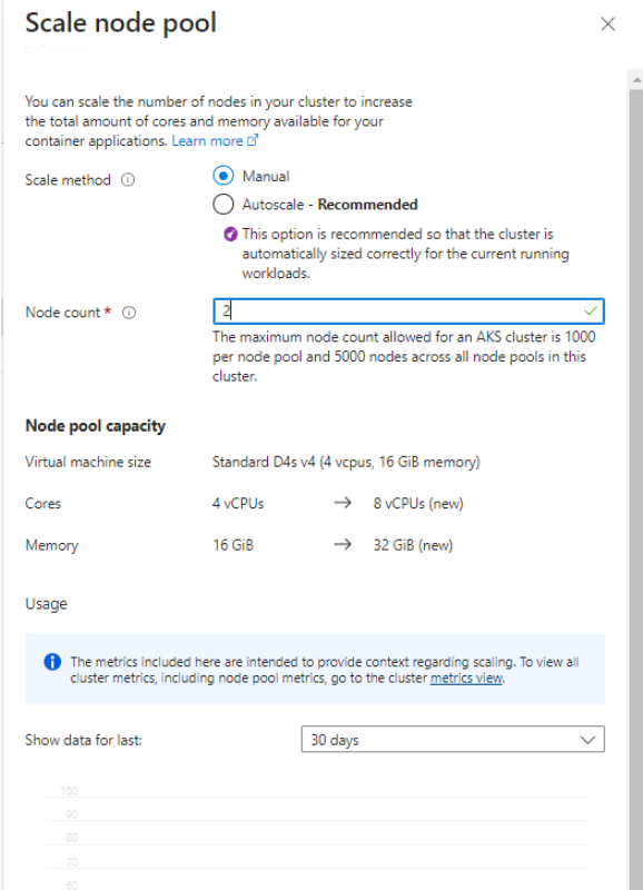 az aks nodepool scale --resource-group <RESOURCE GROUP> --cluster-name <NAME AKS> --name <NODE POOL NAME> --node-count <NEW NODE COUNT>