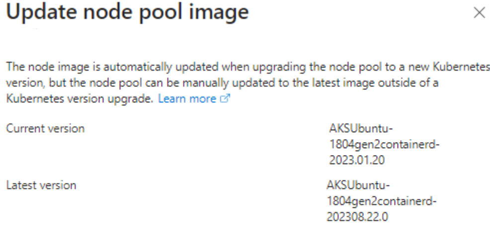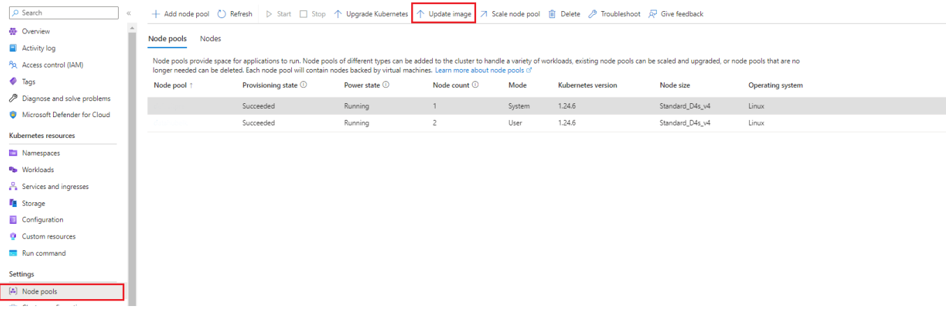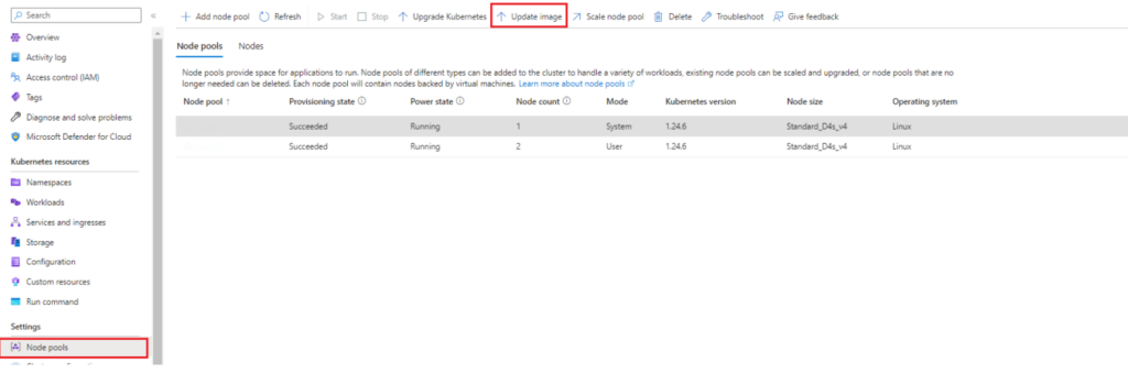 - Seleccionar el Node Pool que desea actualizar y elegir «Update image.»