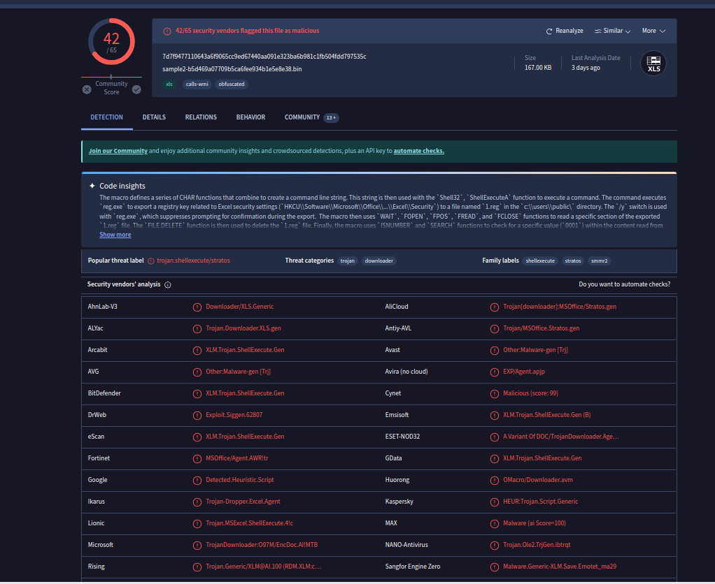 HKCU\Software\Microsoft\Office\Excel\Security. El valorVBAWarningsdentro de esta clave es clave para la detección de un entorno sandbox. -