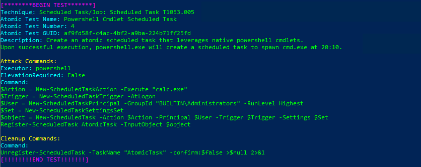Atomic Test Name: Powershell Cmdlet Scheduled Task