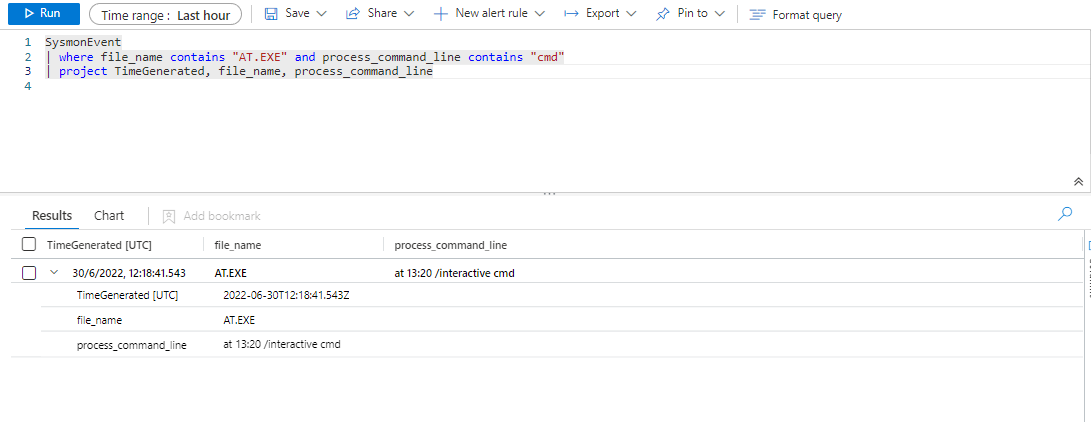 | where file_name contains "AT.EXE" and process_command_line contains "cmd"