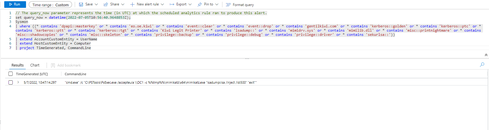 | extend AccountCustomEntity = UserName | extend HostCustomEntity = Computer