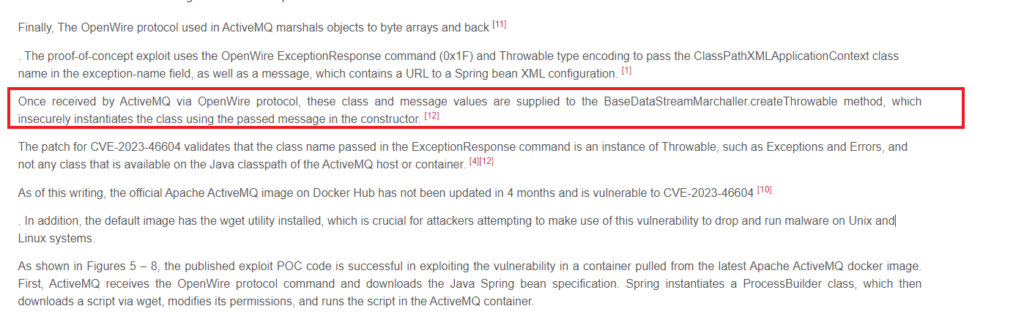 Para encontrar esta respuesta, realicé una búsqueda en mi navegador utilizando el término «CVE-2023-46604 método y clase Java vulnerables», lo que generó múltiples artículos relacionados. En el segundo resultado, en el sitio web fidelissecurity.com, encontré un análisis que proporcionaba la respuesta.