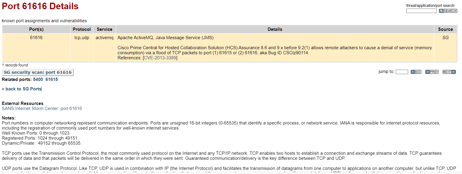 Following up on the previous question, what is the name of the service found to be vulnerable?El puerto 61616 está asociado comúnmente con el servicio de Apache ActiveMQ. Más información
