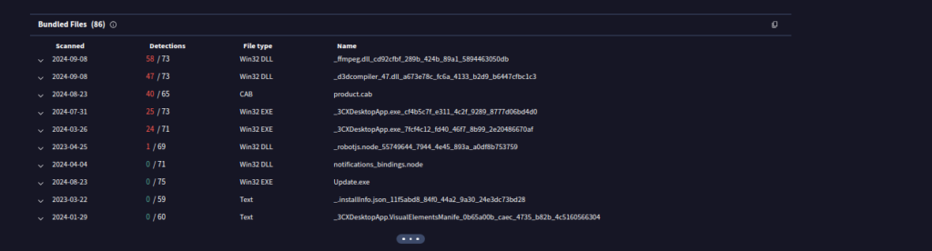 Forescout Vedere Labs analyzed an MSI installer obtained directly from the vendor’s website that includes both the malicious DLLs and the 3CXDesktopApp executable. The initial attack is a DLL sideloading with multiple components involved. The 3CXDesktopApp package contains the following files of interest: