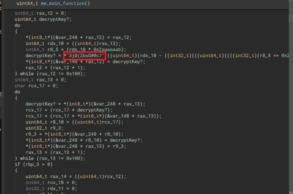 After retrieving d3dcompiler_47.dll, the ffmpeg.dll binary locates and unravels this secondary payload by decrypting an RC4 stream with the key 3jB(2bsG#@c7. According to other threat intelligence, this static key is known to be attributed to DPRK threat actors.