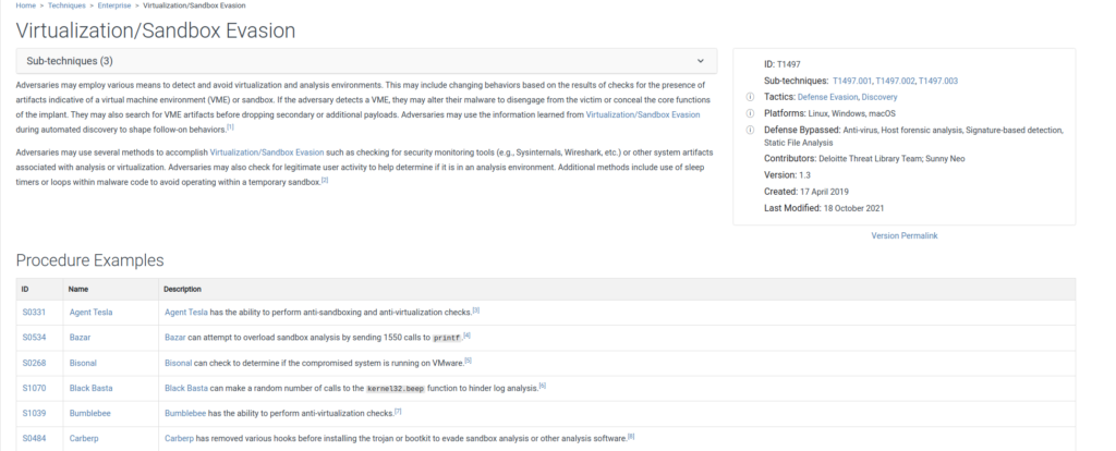 Confirmamos que el identificador correspondiente a la técnica de evasión de virtualización/sandbox es T1497.