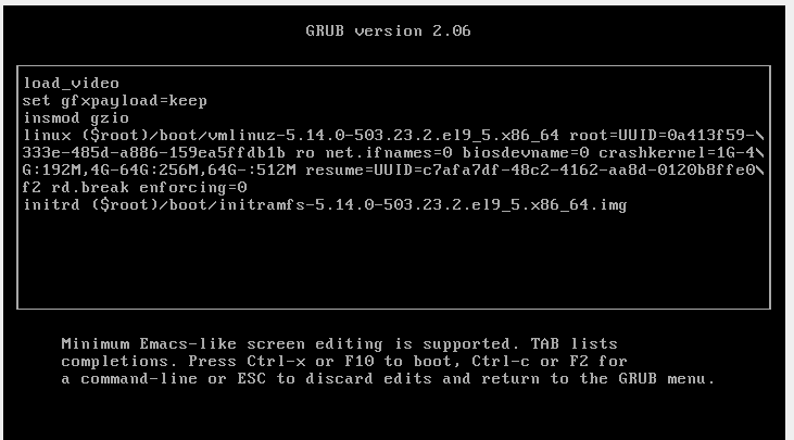 rd.break: Esta es la opción recomendada para sistemas que usansystemd(como Rocky y AlmaLinux). Te detiene justo antes de que el control se pase asystemd, dejándote en un shell de rescate. -